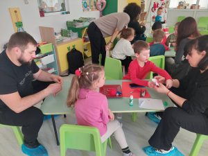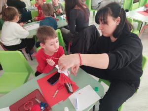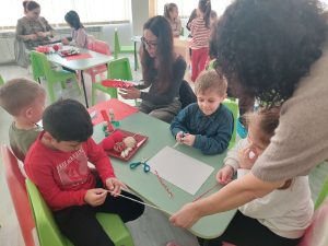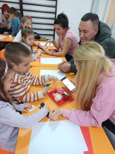 След теоретичната част, децата и родителите се включиха в изработването на мартеници. Възрастните подпомагаха малките, предавайки умения и традиции. Работилницата завърши с обща изложба, която показа резултата от съвместния труд и онагледи единството на групата.